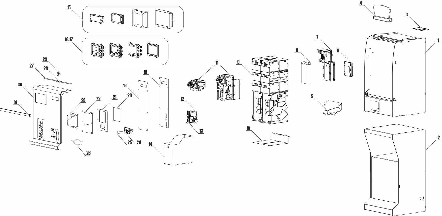 Η μεγαλύτερη καμπίνα προσφέρει περισσότερο χώρο στο εσωτερικό, ώστε η φόρτωση κερμάτων να γίνεται πιο εύκολα και η πρόσβαση στα περιφερειακά (hoppers, κερματοδέκτης, χαρτοδέκτης κ.λπ.) να είναι ξεκάθαρη και γρήγορη, χωρίς να είναι όλα “στριμωγμένα” μεταξύ τους.
